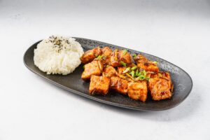 Филе лосося обжаренное в соусе терияки, подается с рисом