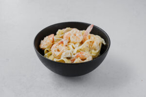 Паста фитучини с креветками и шампиньонами в сливочном соусе с сыром пармезан
