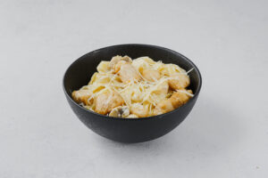 Паста фитучини с курицей и шампиньонами в сливочном соусе с сыром пармезан