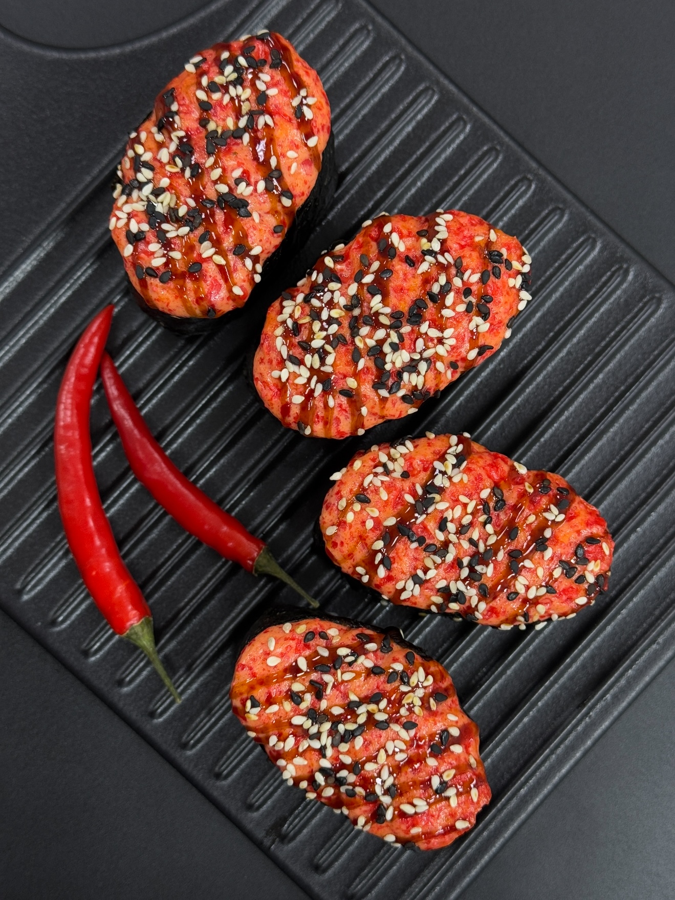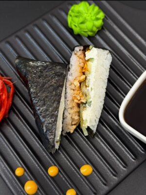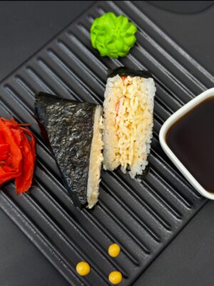 Нори, рис, креветка/лосось/тунец/снежный краб, соус спайси, соус унаги, кунжут