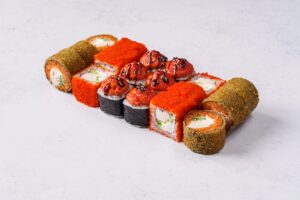 Кунжутный ролл с лососем и масаго
